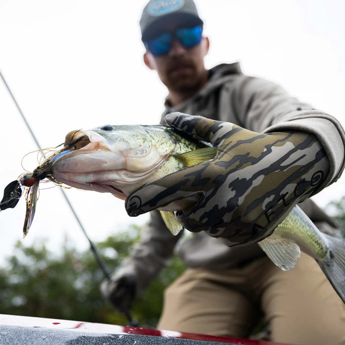 The Aftco Helm Gloves are designed to provide durability, comfort, and protection for anglers out on the water. These gloves feature a synthetic leather palm with silicone grip to ensure a secure hold on fishing gear, as well as reinforced Duratex material on high-wear areas for added resilience. The breathable stretch fabric construction offers flexibility and dexterity, while the vented foam-backed mesh keeps hands cool and dry. With a Velcro closure for a customizable fit and UPF 50+ sun protection, the Aftco Helm Gloves are ideal for long days of fishing in various conditions, making them a reliable choice for any angler.