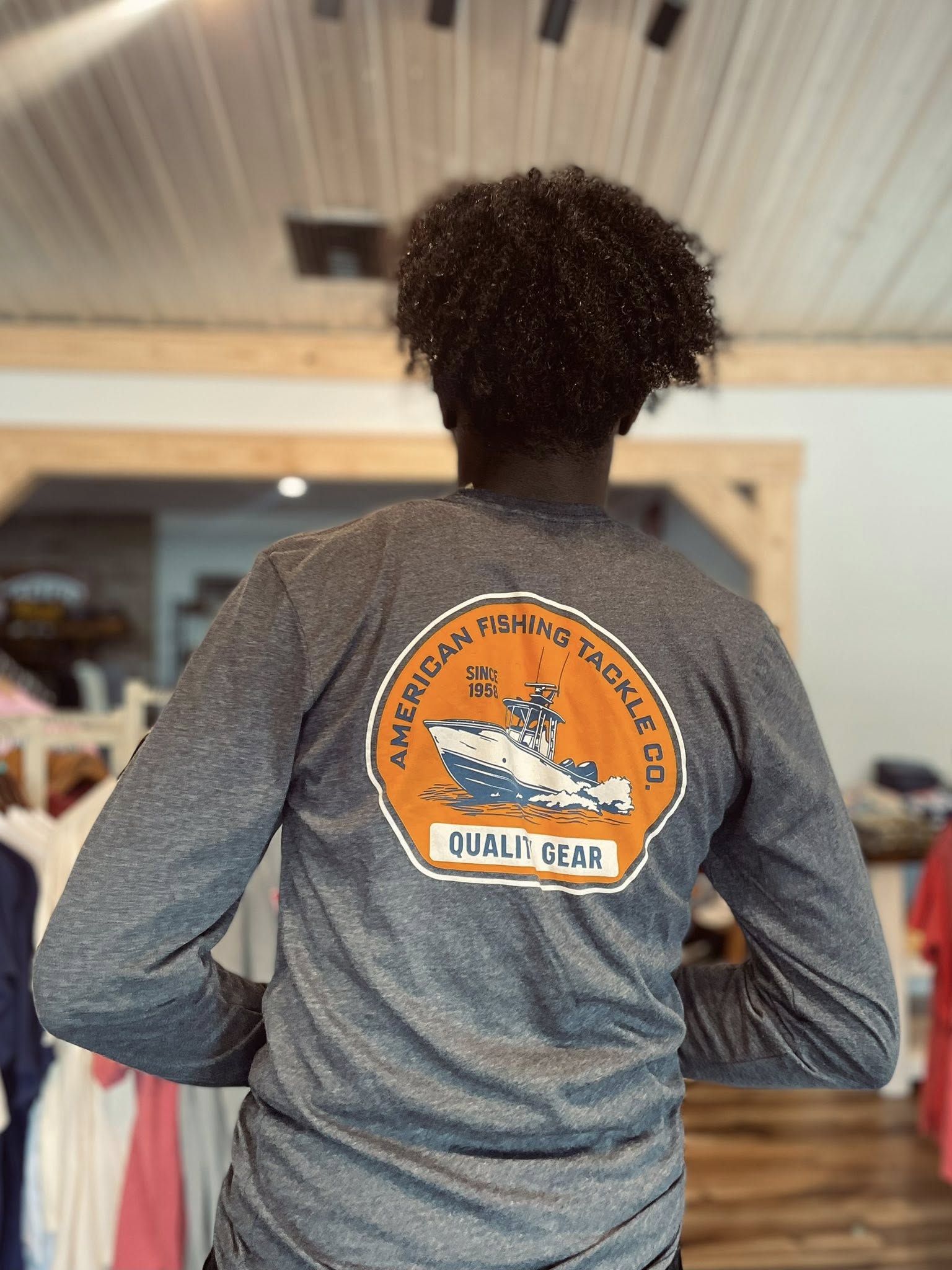Made from a soft 60/40 cotton and recycled polyester blend, this men’s long-sleeve fishing tee is built to last. Blue Skies features a center console chasing blue skies and tight lines.