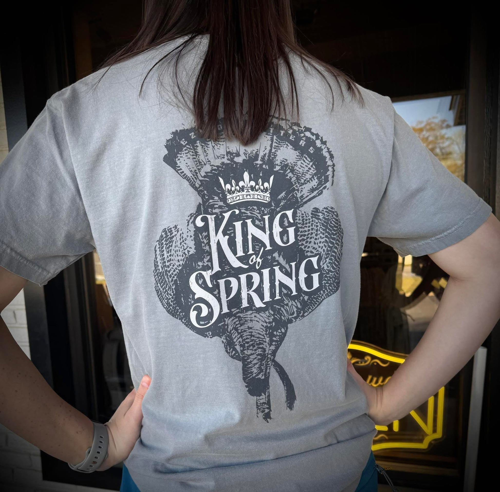 Crowned in feathers and built for the hunt—the EZN Outfitters King of Spring Tee is a tribute to the gobbler that rules the season. Printed on a classic Comfort Colors® pocket tee, this shirt combines that soft, broken-in feel with bold artwork that captures the thrill of turkey season.