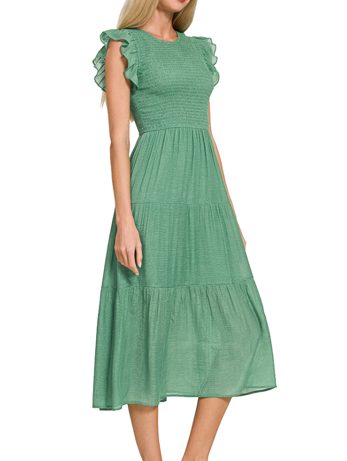 The A Friend Dress is effortlessly elegant and oh-so-pretty. This long dress features ruffle sleeves that add the perfect feminine touch. Available in a stunning jade shade, it’s ideal for special occasions or dressed down with sandals for an easy everyday look. Flowy, flattering, and timeless—this is a dress you’ll reach for again and again