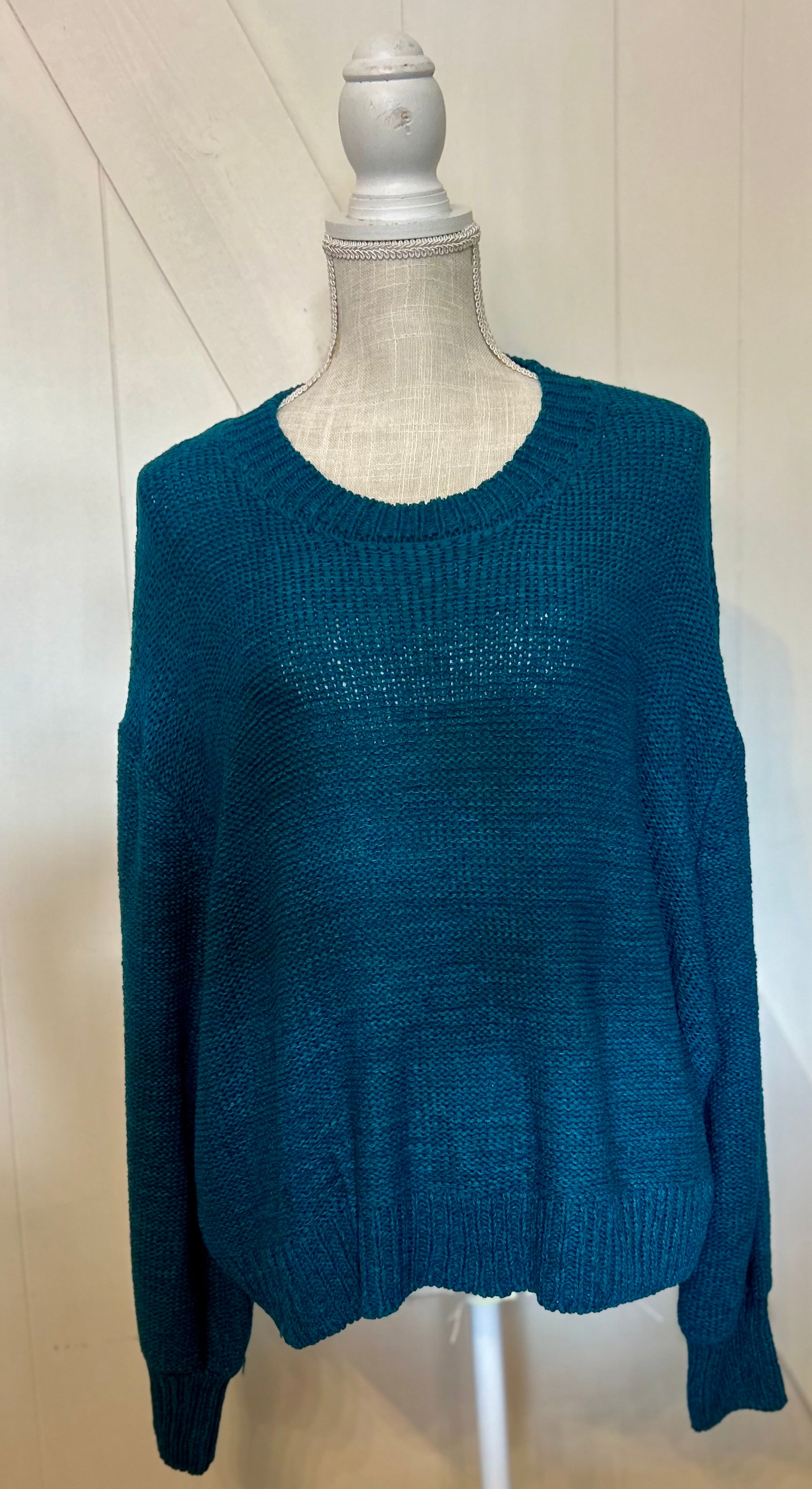 Meet the Not Again Sweater — the cozy knit you’ll keep reaching for. This knitted sweater features a flattering cropped fit with a classic round neckline, giving it the perfect blend of trendy and timeless. Available in warm mocha and eye-catching ocean teal, it’s easy to style with high-waisted denim or layer for cooler days. Cute, comfy, and effortlessly chic, this sweater is a must-have for your fall and winter lineup.