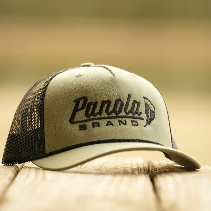 Show your outdoor spirit in style with the Panola Brand Feather Logo Rope Snapback. Featuring premium embroidery of the iconic Panola Brand feather, this Richardson 112FPR cap combines a structured front with a breathable mesh back for all-day comfort. The rope detail across the bill adds a classic touch, while the adjustable snapback closure ensures a perfect fit for most sizes.