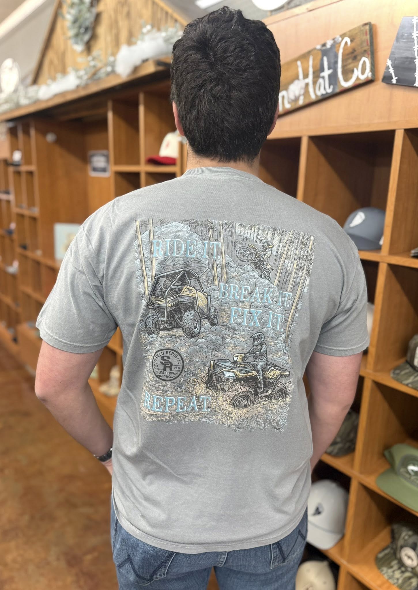 Built for those who live life in the fast lane, the Shield Republic “Ride It, Break It, Fix It, Repeat” short-sleeve tee is as rugged as your adventures. Made from 100% ring-spun preshrunk cotton jersey knit, it’s soft, breathable, and made to move with you.