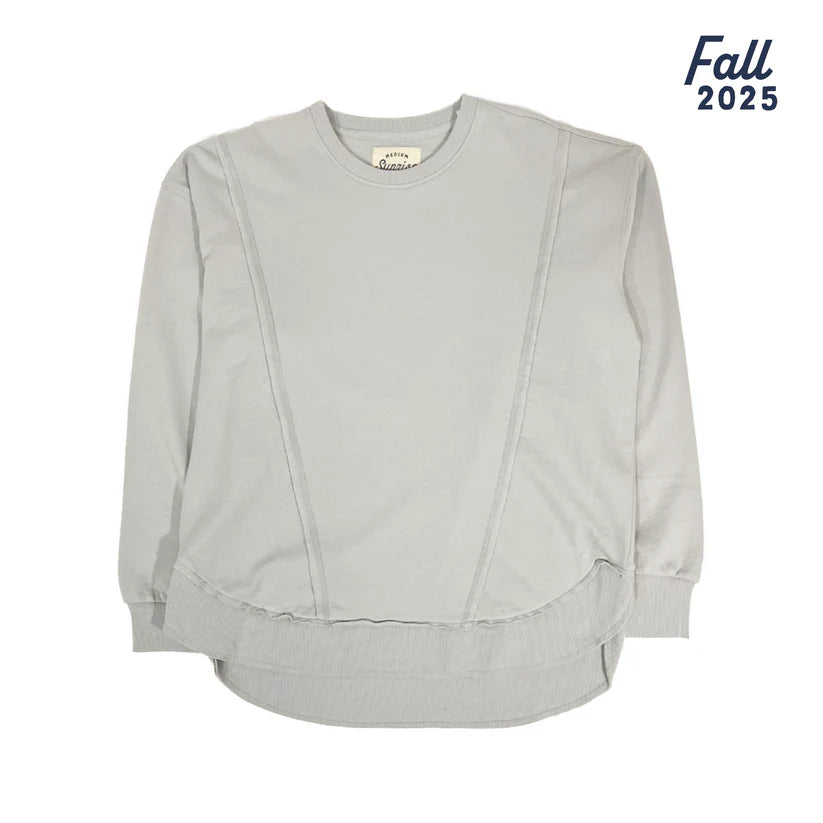 Southern Fried Cotton Sunrise to Sunset oversized crewneck fleece, perfect for cozy days this fall. Made from French terry with a curved raw edge hem and vintage wash for a lived-in feel.